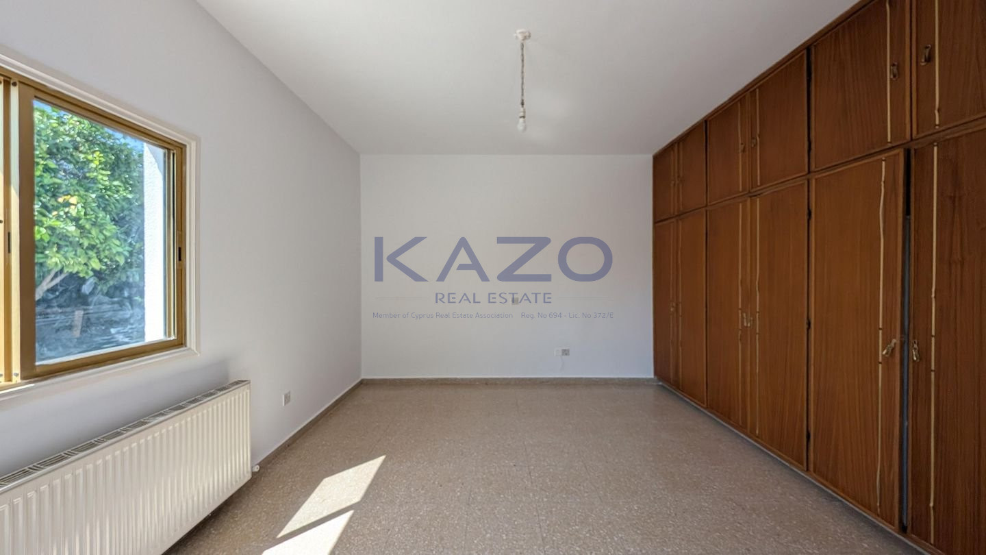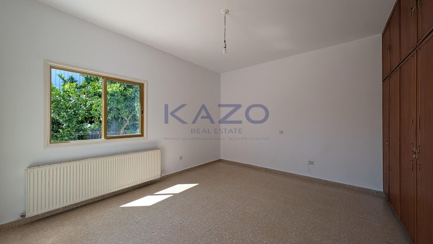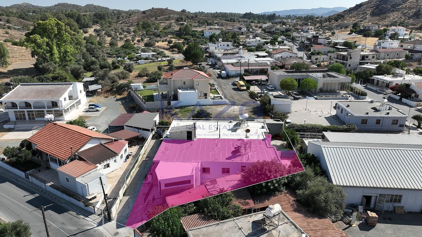 We are delighted to present a unique opportunity in the picturesque village of Kornos, Larnaca – a ground floor house with an adjoining shop, occupying a 1/2 share of a generous 880 sq.m. plot (equivalent to 440 sq.m. of land). The property is located just 70m southwest of the church of Ayios Prodromos, along Grigoris Afxentiou Street, with easy access to the Kornos–Delikipos road only 600m away. Nestled in a tranquil yet central area, it blends village charm with accessibility. Key Features: • 3-bedroom ground floor house, built in 1980, of 150 sq.m. of internal area • Layout includes an open plan sitting and dining room, kitchen with dining area, bathroom, guest toilet, laundry room, and three comfortable bedrooms • Attached shop (28.5 sq.m.) with a private entrance, open-plan interior, and bathroom – ideal for personal business use or rental income • Outdoor areas feature a covered veranda (23.5 sq.m.), uncovered verandas for both house (11.5 sq.m.) and shop (9 sq.m.), a private yard, and a covered parking space Don’t miss out on this rare opportunity to own a unique property in one of Cyprus’s most charming villages. The property falls within Zone H2, with a building coefficient of 90%, coverage of 50%, and permission for 2 floors (8.3m) of construction. There is a Distribution Agreement in place. Energy Category: E