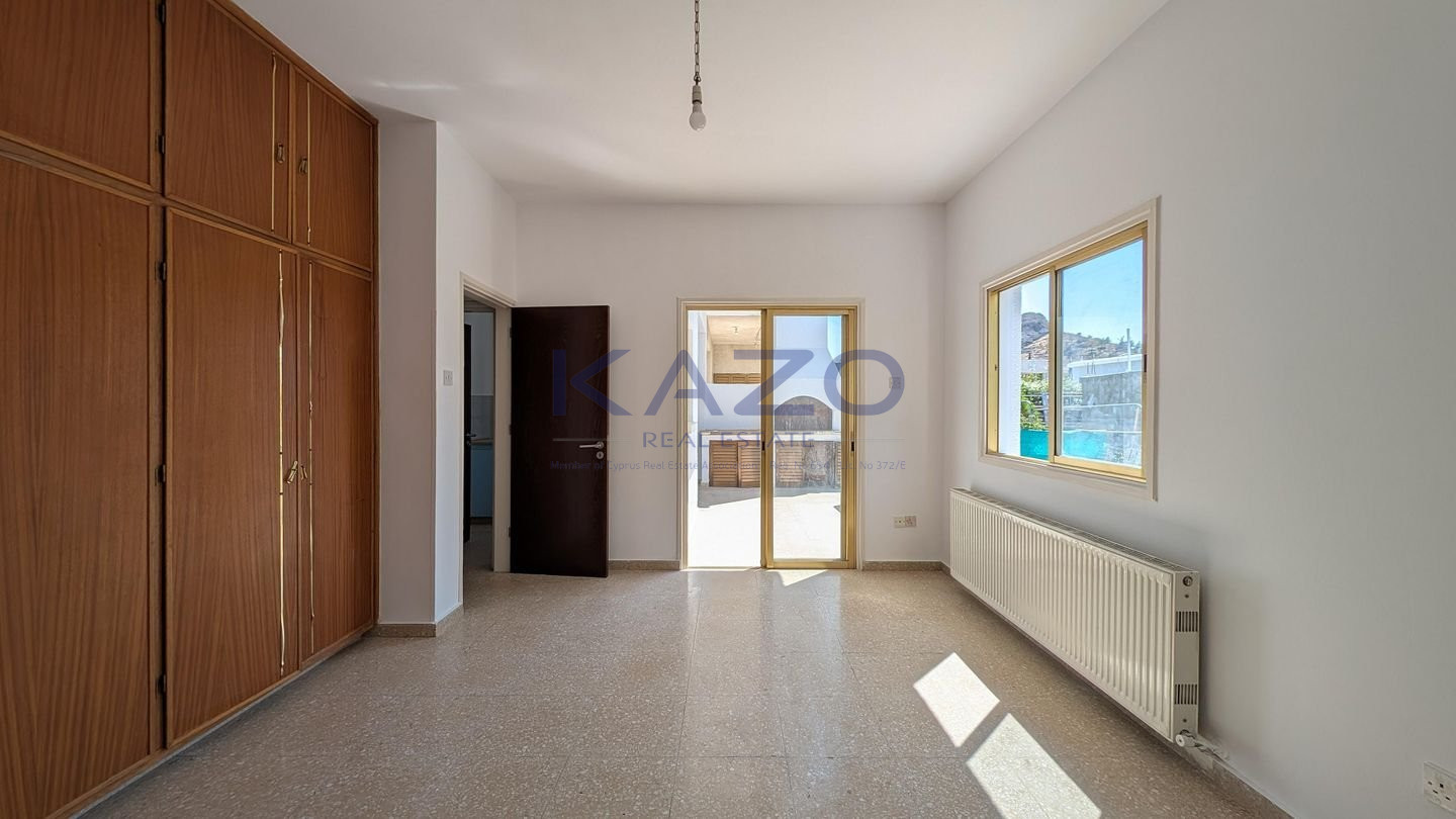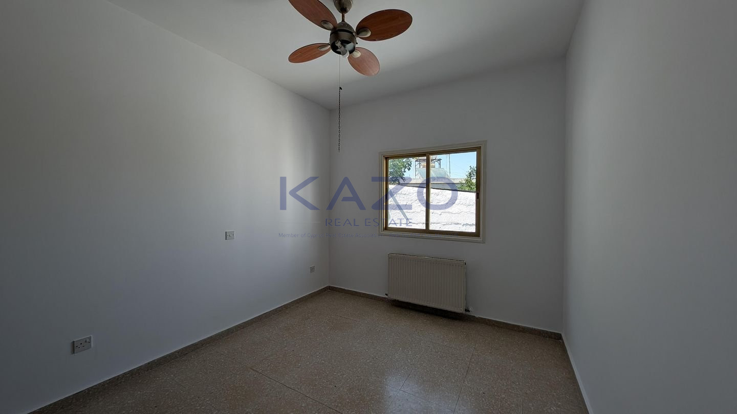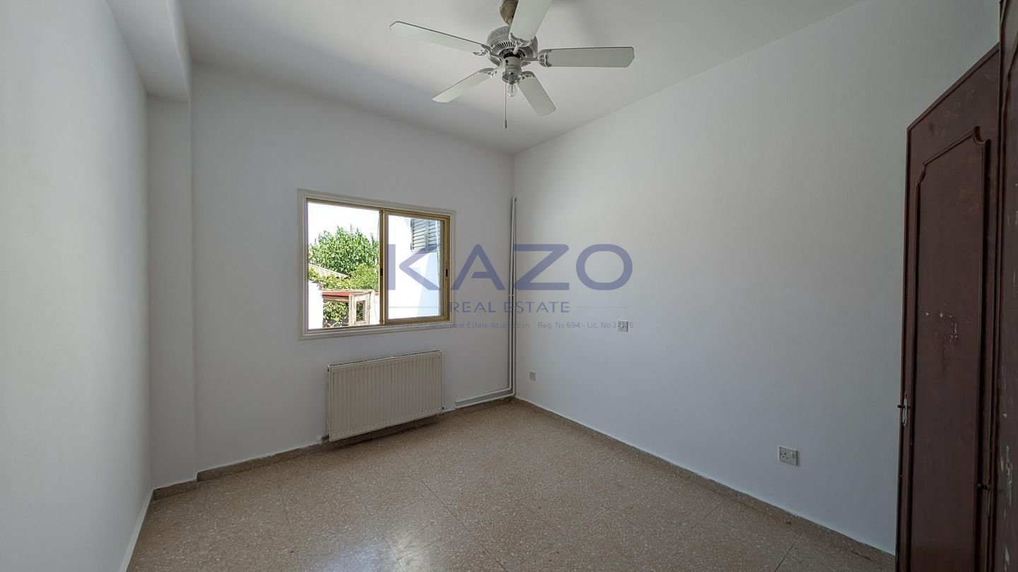 We are delighted to present a unique opportunity in the picturesque village of Kornos, Larnaca – a ground floor house with an adjoining shop, occupying a 1/2 share of a generous 880 sq.m. plot (equivalent to 440 sq.m. of land). The property is located just 70m southwest of the church of Ayios Prodromos, along Grigoris Afxentiou Street, with easy access to the Kornos–Delikipos road only 600m away. Nestled in a tranquil yet central area, it blends village charm with accessibility. Key Features: • 3-bedroom ground floor house, built in 1980, of 150 sq.m. of internal area • Layout includes an open plan sitting and dining room, kitchen with dining area, bathroom, guest toilet, laundry room, and three comfortable bedrooms • Attached shop (28.5 sq.m.) with a private entrance, open-plan interior, and bathroom – ideal for personal business use or rental income • Outdoor areas feature a covered veranda (23.5 sq.m.), uncovered verandas for both house (11.5 sq.m.) and shop (9 sq.m.), a private yard, and a covered parking space Don’t miss out on this rare opportunity to own a unique property in one of Cyprus’s most charming villages. The property falls within Zone H2, with a building coefficient of 90%, coverage of 50%, and permission for 2 floors (8.3m) of construction. There is a Distribution Agreement in place. Energy Category: E