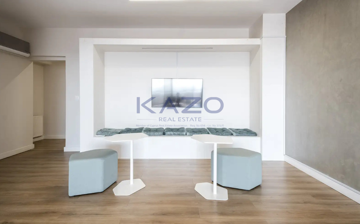 For rent: A modern office space of 100 square meters in the heart of Agios Theodoros. This fully furnished property is an excellent choice for professionals looking for a contemporary workspace in a vibrant and accessible area.