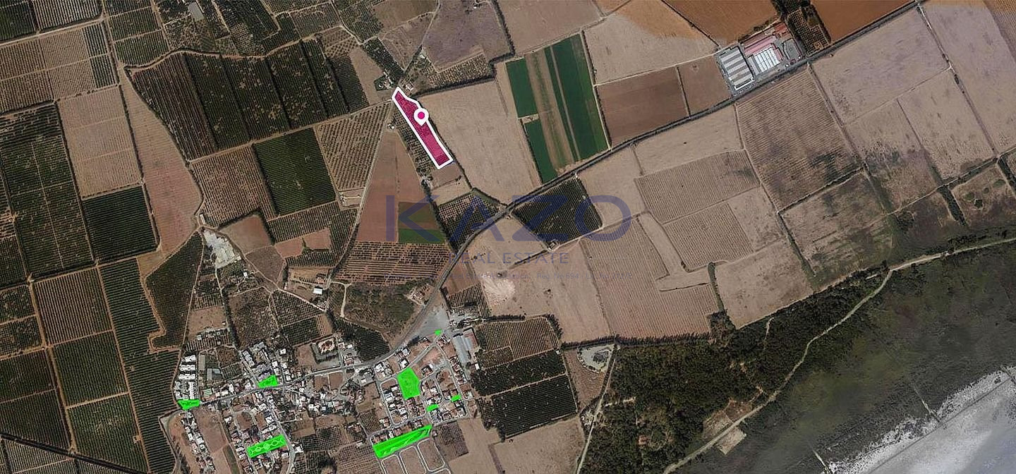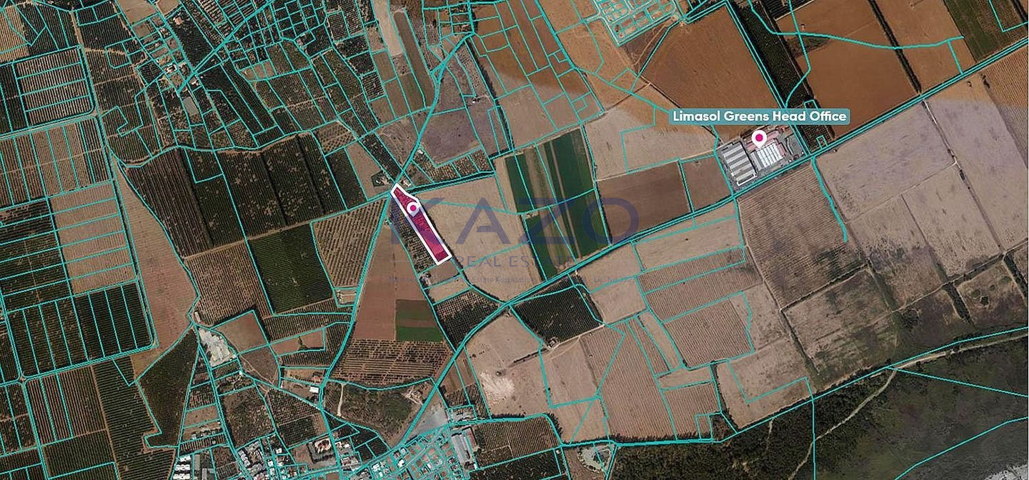 Situated in Asomatos Community, this undivided share field offers a peaceful setting just 1.8km from the Limassol Salt Lake and close to nearby residential zones. Property Highlights: • Total Field Area: 1/5 share of 11,372sq.m. corresponding to approx. 2,274sq.m. • Access: Registered Road along its northwestern boundary • Frontage: 32m Zone: Falling within Protection Zone Z1, it allows for 6% building density and coverage, up to 2 floors and a maximum height of 8.3 meters. Location: • Approx. 1.8 km northwest of Limassol Salt Lake • Approx. 920 meters northeast of the community center A great option for buyers seeking land in a quiet, natural environment in proximity to Limassol. No distribution agreement in place.