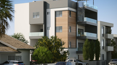 For sale: Modern 2+1 bedroom apartment under construction in Agios Athanasios, offering 90 m² of internal space on the first floor of a three-story building with an elevator.