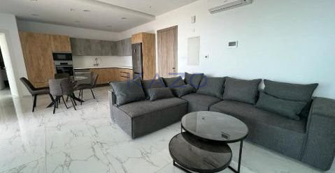 Welcome to this modern, fully furnished apartment available for rent in Mouttagiaka. Situated on the 5th floor of a secure, gated complex, this bright home offers a generous 106 m² of internal space. It features three comfortable bedrooms, a spacious bathroom, and a basement for additional storage. Large windows fill the apartment with natural light and provide a stunning panoramic sea view.