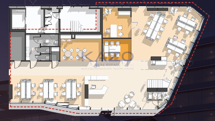 This modern office is ready for immediate occupancy, suitable for businesses looking for a professional and impressive base in Agios Athanasios. Viewings are arranged by Kazo Real Estate, your trusted partner for commercial property rentals.