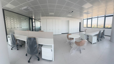 The office is fully furnished and features a sophisticated, contemporary design. The central AC system maintains the perfect temperature throughout the office, while large windows facing southeast provide ample natural light, creating a bright and inviting workspace.
