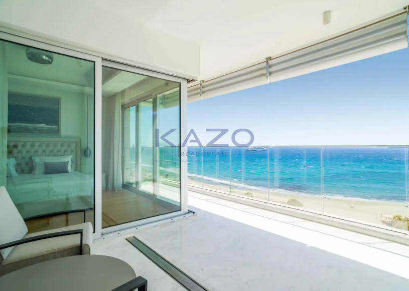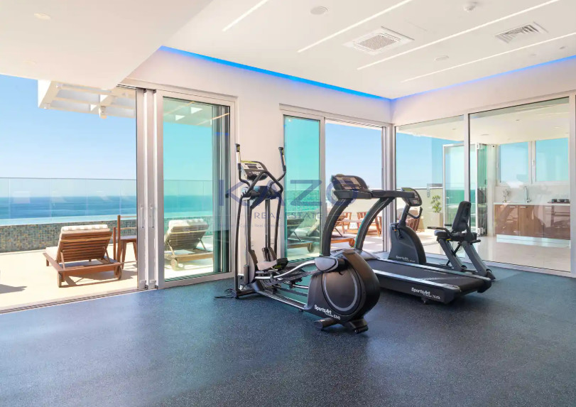 Residents enjoy exclusive amenities including a communal swimming pool and a fully equipped gym. An elevator adds convenience, and the building's energy efficiency rating of A ensures lower utility costs. With direct sea front access, every day at home feels like a holiday.