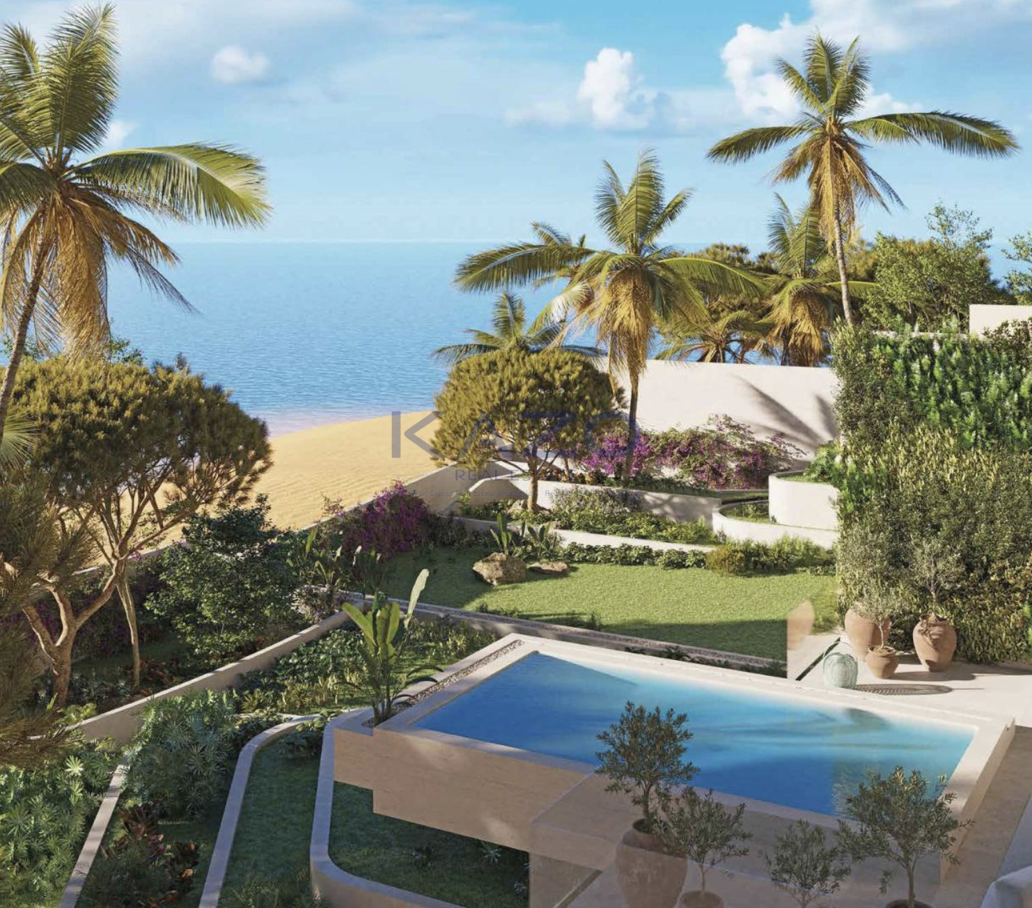 Offered by Kazo Real Estate. Experience modern living in an outstanding location with breathtaking sea views. Completion date is set for 2026.