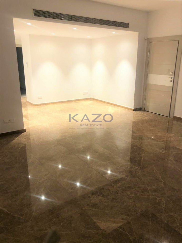 The four-bedroom apartment covers the entire first floor of a five-level residential building. The apartment offers an internal area of 170 square meters and an external area of 50 square meters. In particular, the whole-floor apartment consists of an open-plan living room, dining, and kitchen area, a guest toilet, two bedrooms with an en-suite shower each, a bathroom, two additional bedrooms, and a large covered veranda. As a plus, the four-bedroom apartment comes with laminate parquet in the bedrooms, a VRV air-conditioning system, double-glazed windows, a solar water system, two storage rooms, and two covered parking spaces. Located in the Neapolis area, this modern apartment is within walking distance of the beach and about 10 minutes to the city center, Limassol Marina, and the Motorway.
