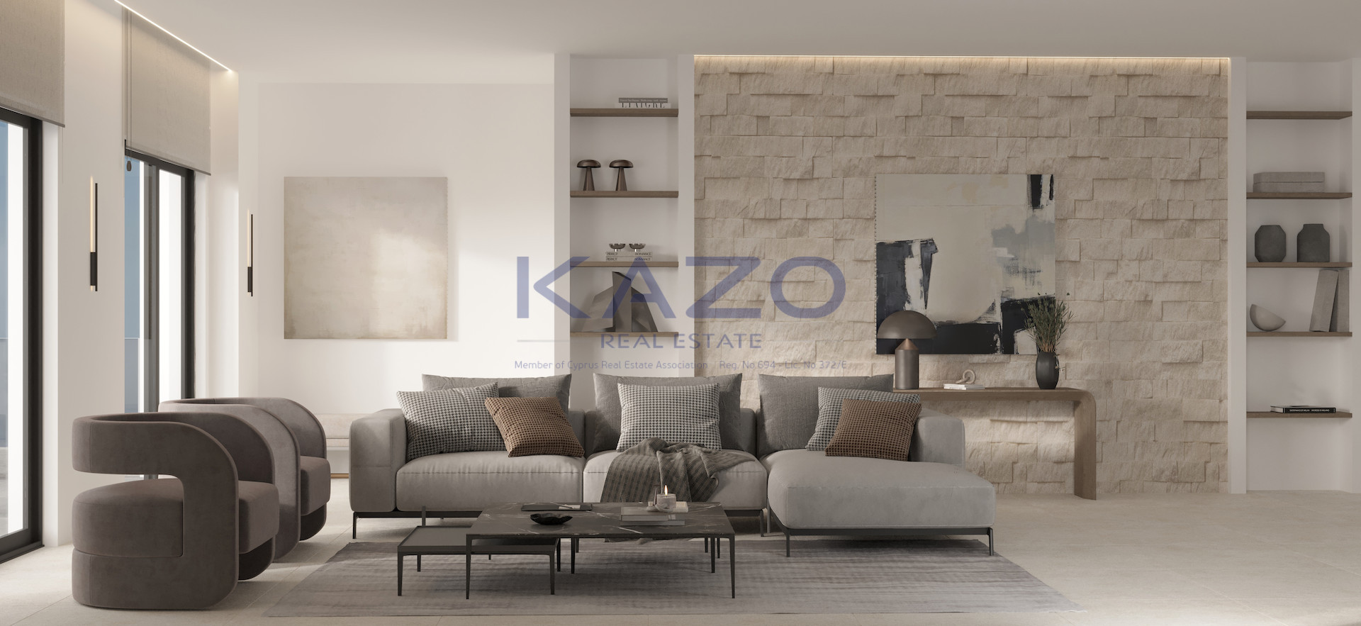 All properties displayed at www.kazo.com.cy are subject to availability. Kazo Real Estates makes no warranties, undertakings or representations with respect to the content of the website (such as accuracy, quality, comprehensiveness etc of such content) and no liability or responsibility of any kind whatsoever is accepted by Kazo Real Estates concerning the information contained in this website.