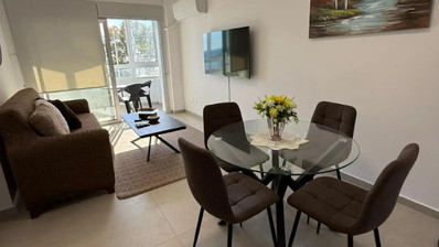The apartment's location is hard to beat, situated right on the seafront. Large windows let in plenty of natural light, and you can enjoy fresh sea breezes every day. The cozy living area is thoughtfully designed for relaxation, while the kitchen comes equipped with all essential appliances. Both bedrooms have ample storage, and tasteful furnishings throughout create a homely atmosphere.