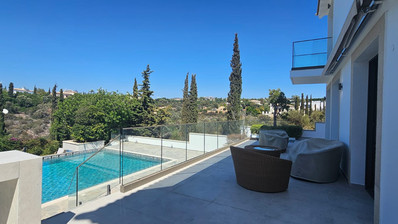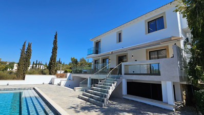 This spacious A+ energy-efficient villa, built in 2007, is located in the prestigious Kouklia – Aphrodite Hills area and sits on a 1400 m² plot. With a total internal area of 275 m² (160 m² main living space, 80 m² semi-basement, and a 35 m² studio), it offers five bedrooms and five bathrooms, plus a fully equipped studio with its own kitchen and bathroom—ideal for guests or staff.