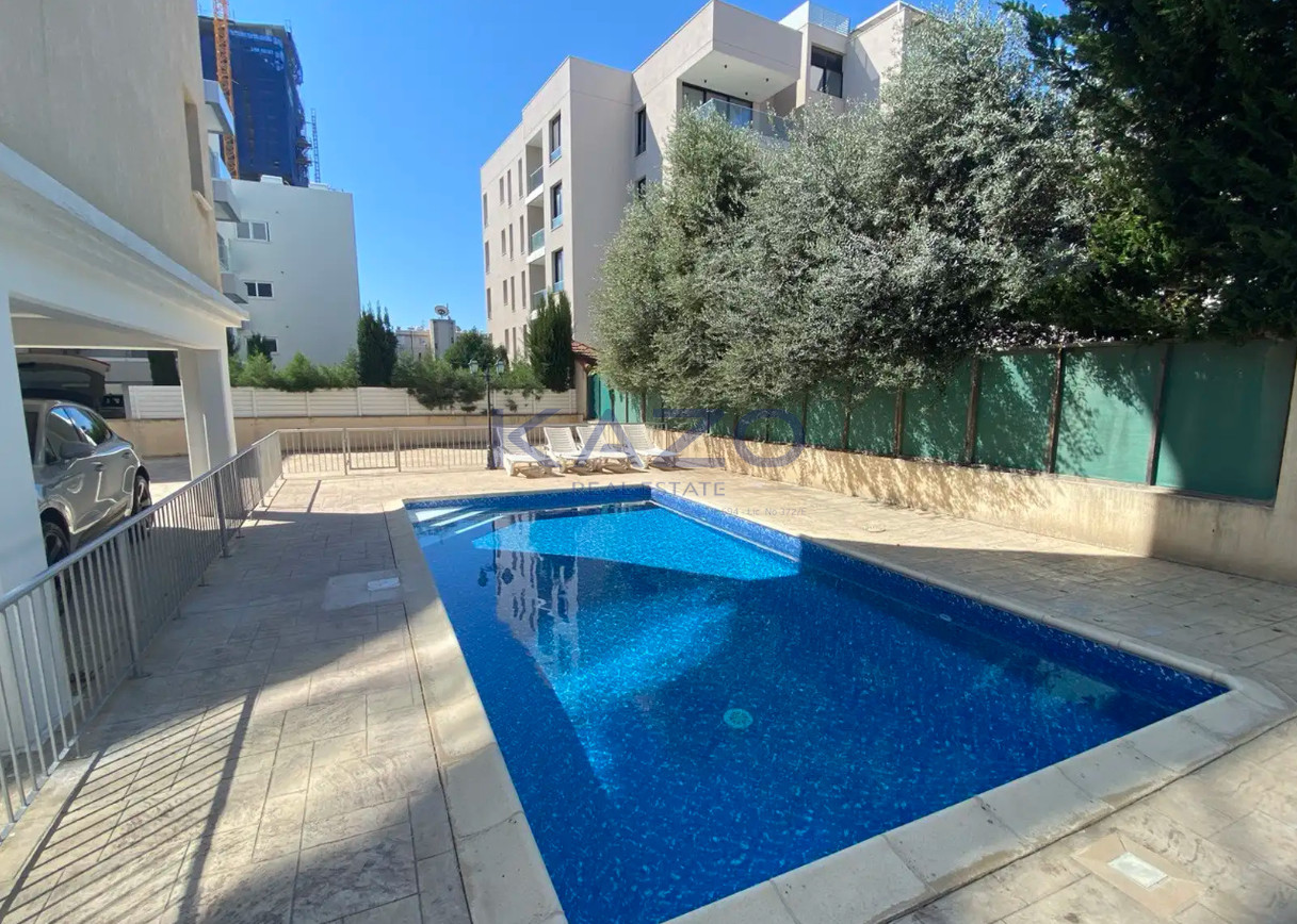 Residents of the building have access to a communal swimming pool, providing a refreshing escape during warm weather. With all amenities nearby and tasteful furnishings throughout, this apartment offers exceptional value. For more information or to arrange a viewing, please contact Kazo Real Estate.