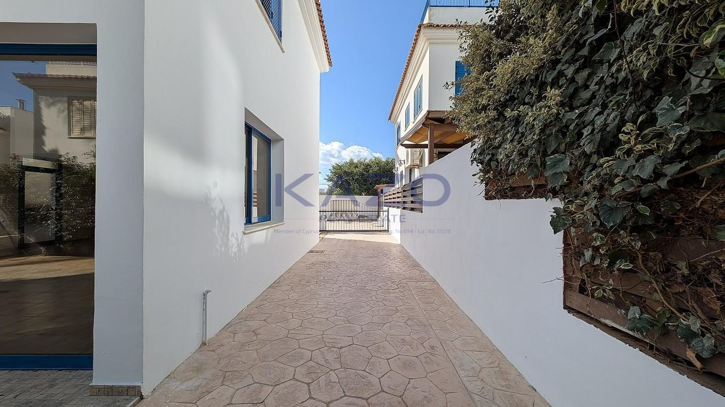 OPEN HOUSE Wednesday 18/02/2026 Hours 15:30 - 16:30 pm This property is a two-storey detached house situated within a residential complex in the Paralimni Municipality, Ammochostos District. Its prime location offers immediate access to the coastline and local landmarks. Property Specifications The residence features a spacious and functional layout designed for coastal living: •Land Area: 167 sq.m. •Enclosed Area: 134 sq.m. •Uncovered Veranda: 30 sq.m. •Private Yard: 59 sq.m. •Roof Garden: 28 sq.m. (Enclosed) and 38 sq.m. (Uncovered) with partial sea views. Interior Layout •Ground Floor: Comprises an open plan living and dining area, a separate kitchen/sitting room, and a guest W/C. •First Floor: Features three bedrooms, including a master bedroom with an en-suite bathroom, and a main family bathroom. Location & Connectivity The asset is ideally located just steps away from the sea and key amenities: •Vrysoudi Beach: Approximately 100m to the north. •Vrysoudia Avenue: Approximately 120m to the east. •Serena Beach: Approximately 320m to the northwest. There is a separate title deed for this property. Pending issuance of Energy Performance Certificate