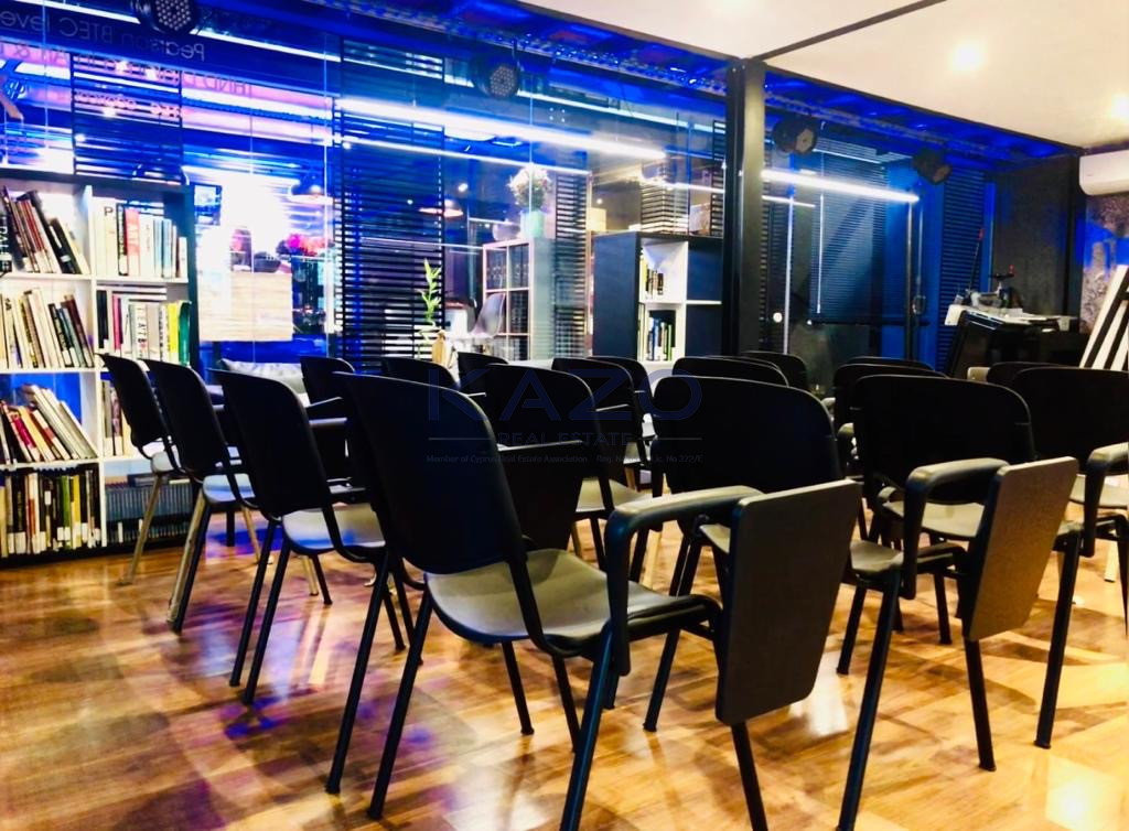 For rent: Two spacious office spaces located in the heart of City Center – Agia Triada. Offering an internal area of 447 square meters, this property is ideal for businesses seeking a professional environment in a prime location. The offices are used but well-maintained, providing a practical layout that can accommodate various business needs.