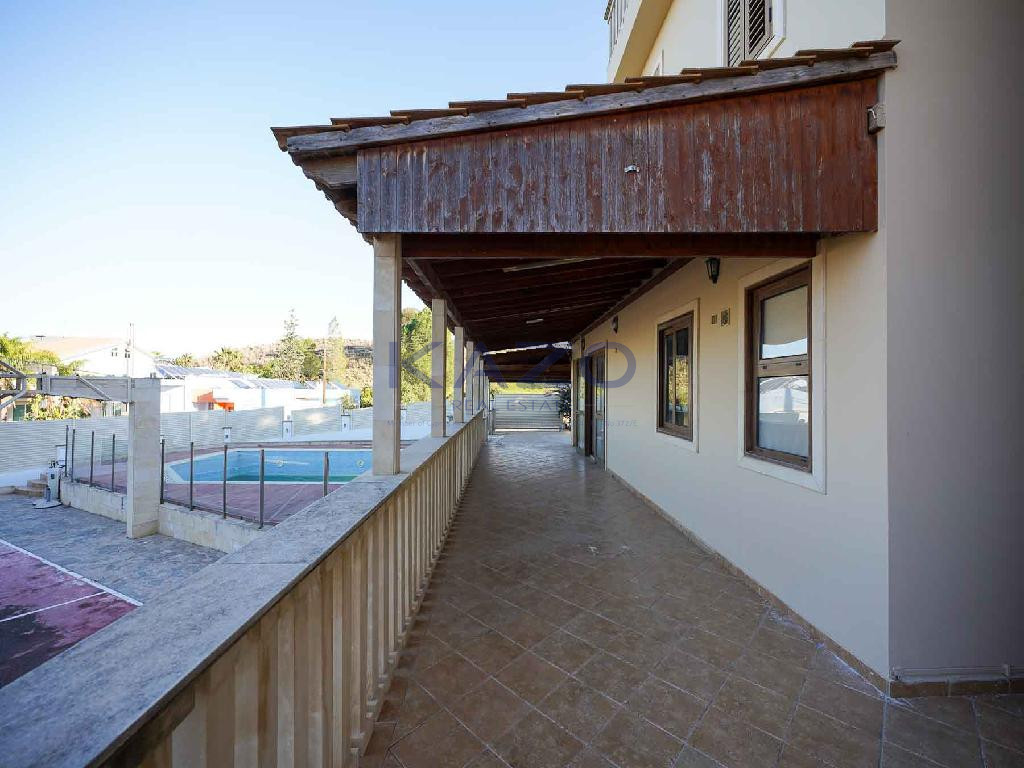 For sale in Tseri Municipality, Nicosia District, is this spacious two-storey detached house with a swimming pool, located approximately 150 meters west of Tseriou Avenue. The property is set on a corner plot, opposite public green areas, offering privacy and open views in a quiet residential neighborhood.