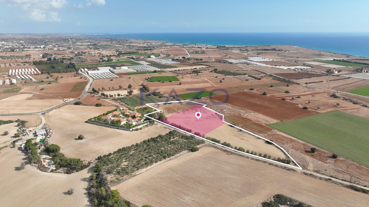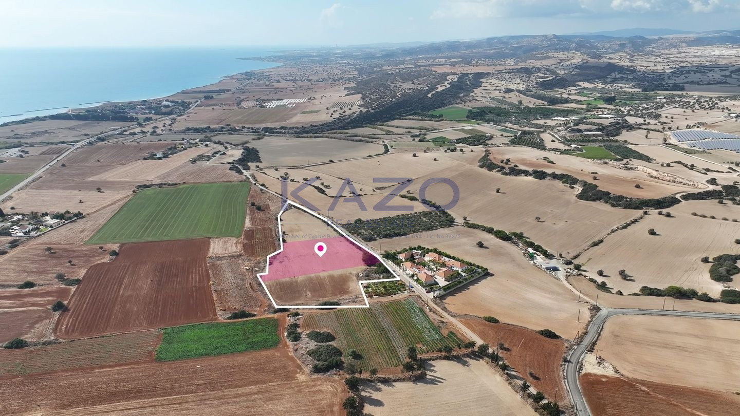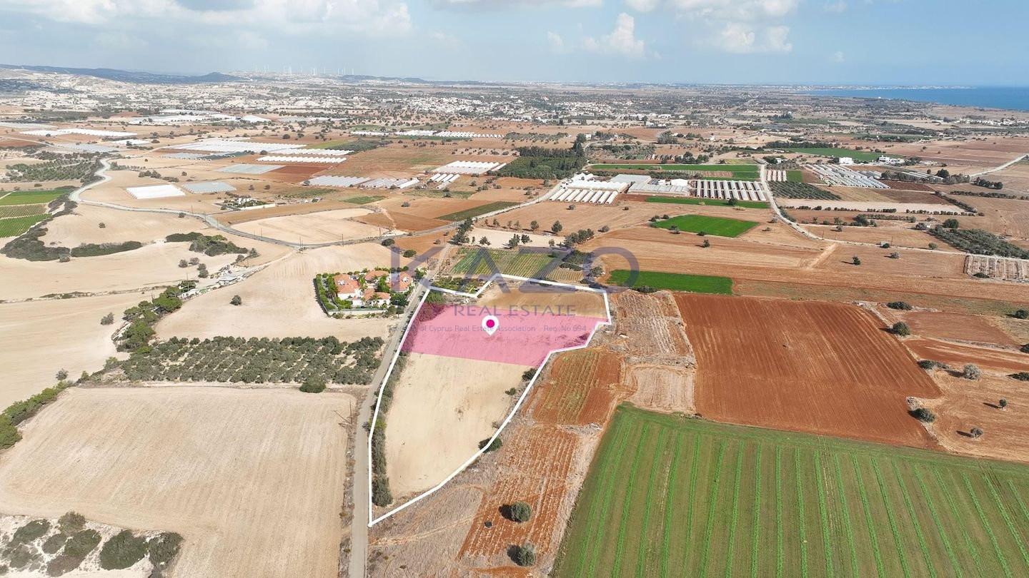 This property offers a 1/3 share of a prime field located in the charming village of Anafotida, within a holiday homes and tourist development zone. The entire field measures 17,392 sq.m, and the share for sale corresponds to approximately 5,797 sq.m of flat, easily developable land. Its generous size and zoning make it an ideal choice for creating a holiday retreat or securing a valuable investment in one of Larnaca’s most peaceful and picturesque areas. Location & Connectivity: • Approx. 4.5 km south of Anafotida center (Dimitri Vikela Avenue) • 1.5 km north of the beachfront, • 400 m north of the Kiti–Zigi road, • 1.5 km northeast of Robinsons Hotel The property falls within Zone Π1, with a building coefficient of 15%, coverage of 15%, and permission for 2 floors (8.3m) of construction. Distribution Agreement in place