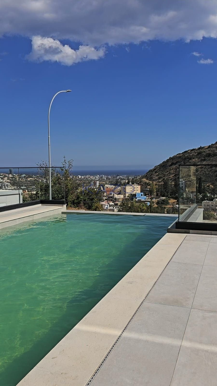 Luxury five-bedroom detached villa with stunning sea and town views is available for sale in the Germasoyeia village area.