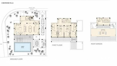 The villa consists of four generously sized bedrooms and four modern bathrooms, providing ample space and privacy for everyone. Large windows fill the home with natural light, creating a bright and welcoming environment. The open-plan living and dining area offers a unique space for relaxation and entertaining guests.