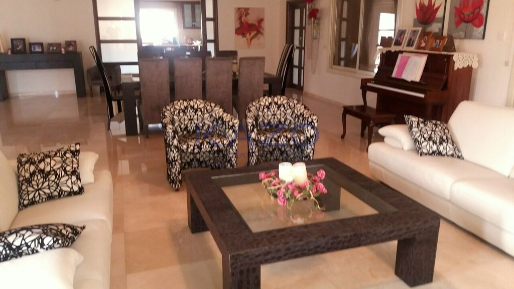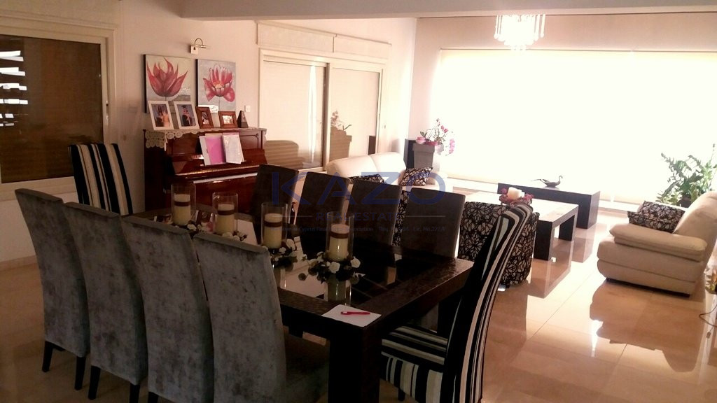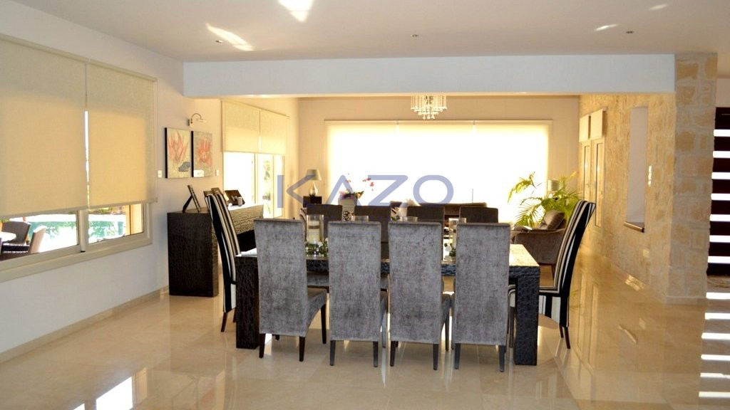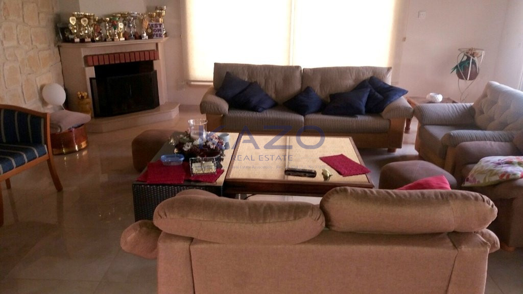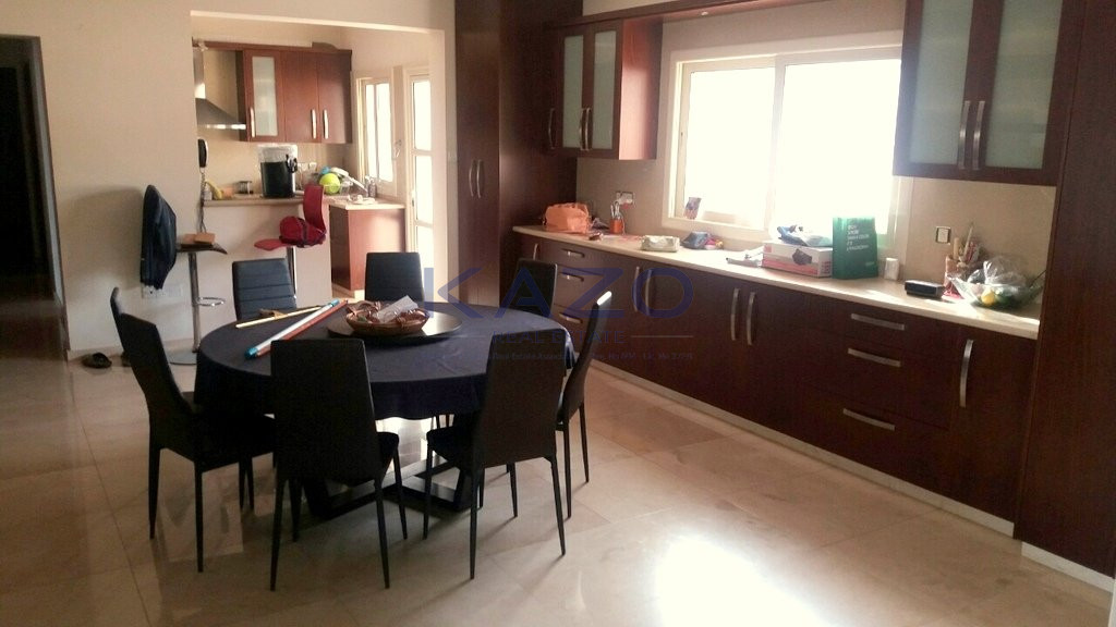 The detached house sits on a plot area of 1100 square meters and offers a covered area of 600 square meters, an external area of 200 square meters, and a basement level 200 square meters. The property consists of nine bedrooms, an open plan dining and living room area, two additional living room areas, a separate kitchen, four bathrooms, and three showers. Also, it offers a covered parking space, a spacious covered and uncovered veranda, and a private swimming pool, while it is equipped with six air-conditioning units and a solar water system.